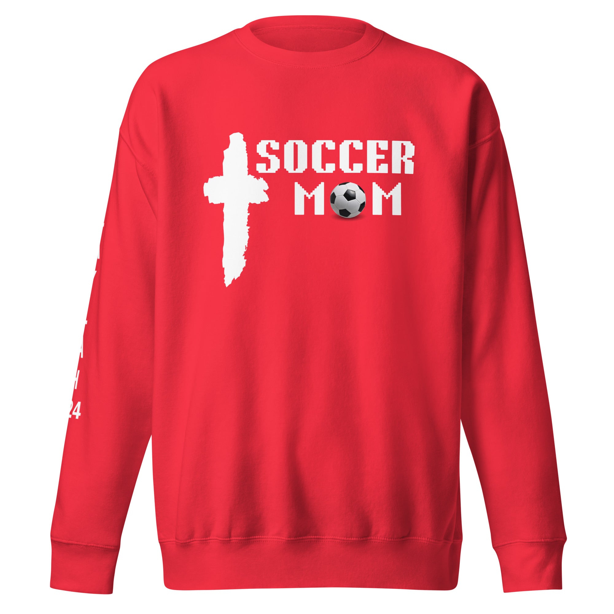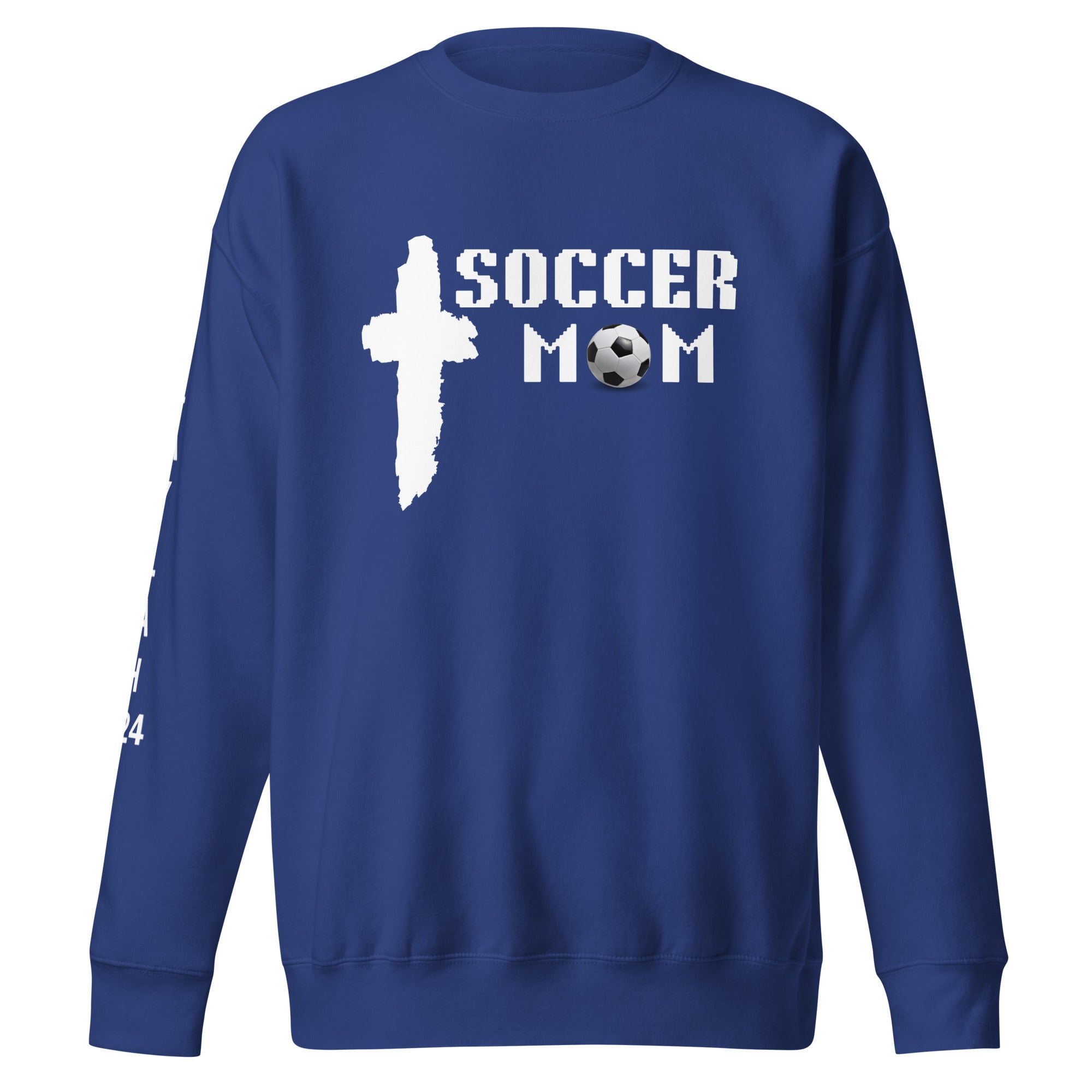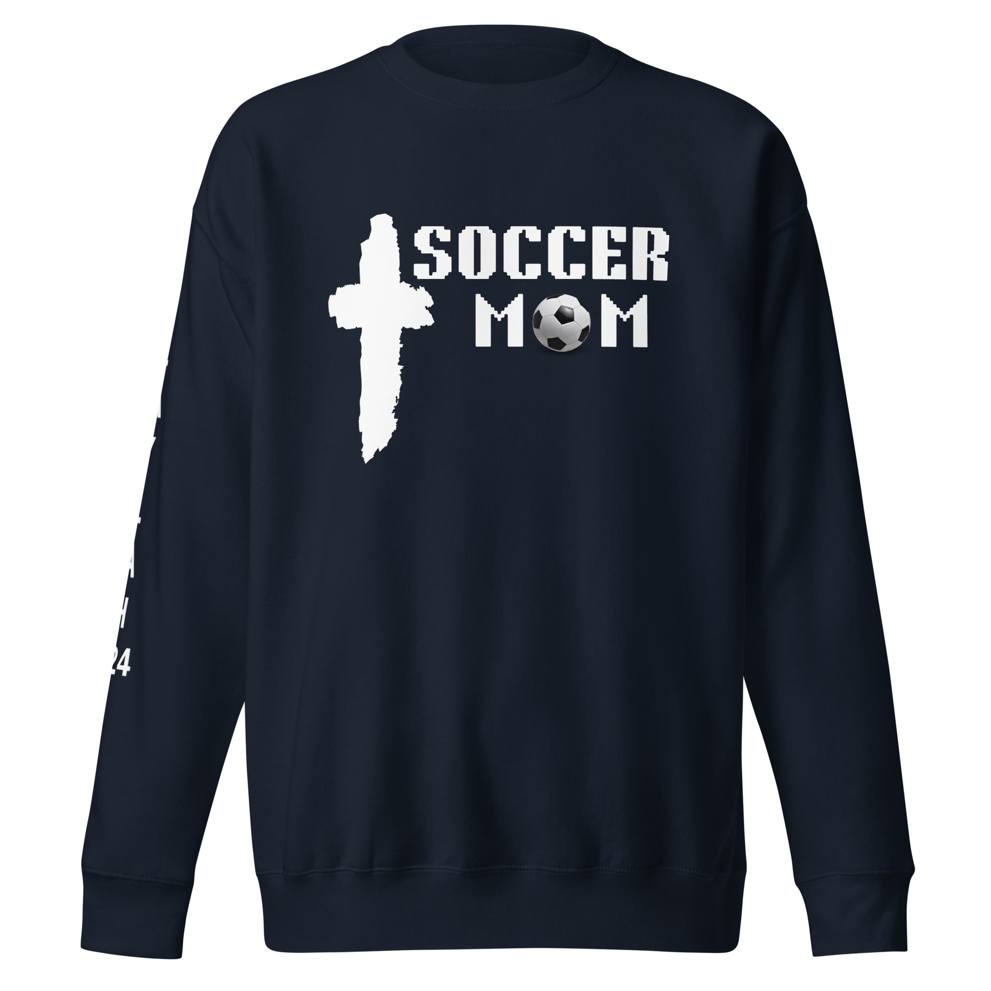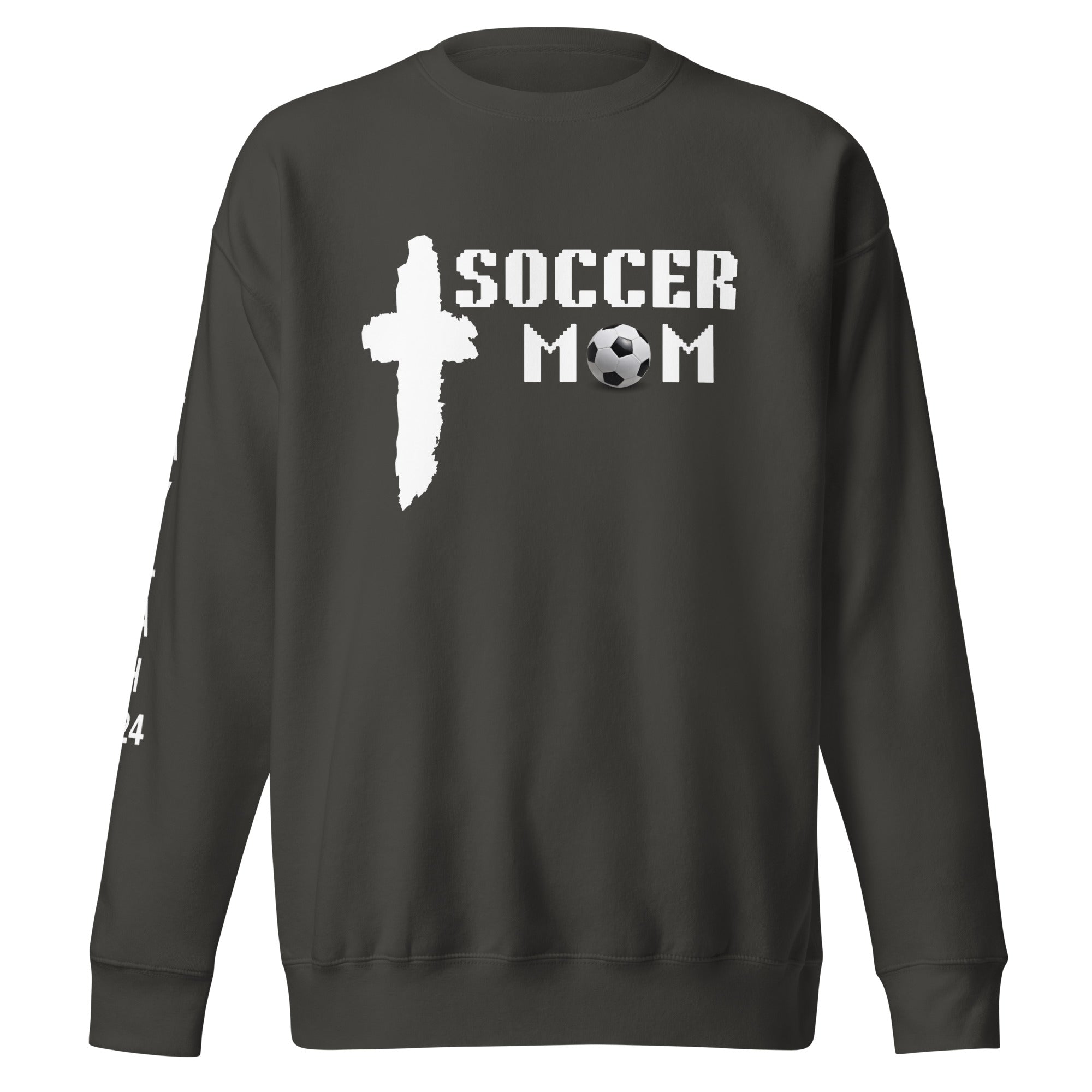 Soccer Mom with Cross Premium Sweatshirt_Name on Sleeve